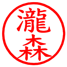 [朱肉の色]を選び、入力窓に“瀧森”と入力して[生成]ボタンを押すと、印影が更新され、リンクから電子印鑑(デジタル印影)がダウンロードできます。 電子印鑑「瀧森」の作り方文字表示が変なときや、文字バランスが悪いときは[字形切替]のチェックボックスでON/OFFを切り替え[生成]しなおしてください。 生成される画像は通常の印影「瀧森.png」と、にじみを表現した少し太めの印影「瀧森B.png」の背面透過PNG形式2種と、鮮明なPDF形式の印影「瀧森.pdf」の計3種類です。 朱肉の微妙な色の違いを7色で表現しました。デフォルト(左端)は、JISが定めた朱肉の色のマンセル値(7.5R 5/14)をRGB値(217,66,54)に変換したものになっています。 「電子透かし」にチェックを入れて[生成]ボタンを押すと、タイムスタンプを電子透かしとして埋め込んだセキュアな電子印鑑が作れます。詳細は別ページの「タイムスタンプと電子透かし」でご覧ください。 瀧森さんの日付印が作れます。「日付スタンプメーカー」は、社内向けの書類に利用されることの多い日付印(データ印)が無料で作れるWebアプリケーションです。中段に日付が入り、上段と下段は、ともに8文字まで文字が入ります。 ![]() 古代文字で落款印が作れます。「落款スタンプメーカー」で作品を引き立たせる落款印が作れます。