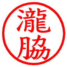 [朱肉の色]を選び、入力窓に“瀧脇”と入力して[生成]ボタンを押すと、印影が更新され、リンクから電子印鑑(デジタル印影)がダウンロードできます。 電子印鑑「瀧脇」の作り方文字表示が変なときや、文字バランスが悪いときは[字形切替]のチェックボックスでON/OFFを切り替え[生成]しなおしてください。 生成される画像は通常の印影「瀧脇.png」と、にじみを表現した少し太めの印影「瀧脇B.png」の背面透過PNG形式2種と、鮮明なPDF形式の印影「瀧脇.pdf」の計3種類です。 朱肉の微妙な色の違いを7色で表現しました。デフォルト(左端)は、JISが定めた朱肉の色のマンセル値(7.5R 5/14)をRGB値(217,66,54)に変換したものになっています。 「電子透かし」にチェックを入れて[生成]ボタンを押すと、タイムスタンプを電子透かしとして埋め込んだセキュアな電子印鑑が作れます。詳細は別ページの「タイムスタンプと電子透かし」でご覧ください。 瀧脇さんの日付印が作れます。「日付スタンプメーカー」は、社内向けの書類に利用されることの多い日付印(データ印)が無料で作れるWebアプリケーションです。中段に日付が入り、上段と下段は、ともに8文字まで文字が入ります。 ![]() 古代文字で落款印が作れます。「落款スタンプメーカー」で作品を引き立たせる落款印が作れます。
