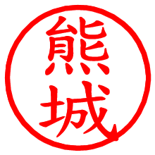 [朱肉の色]を選び、入力窓に“熊城”と入力して[生成]ボタンを押すと、印影が更新され、リンクから電子印鑑(デジタル印影)がダウンロードできます。 電子印鑑「熊城」の作り方文字表示が変なときや、文字バランスが悪いときは[字形切替]のチェックボックスでON/OFFを切り替え[生成]しなおしてください。 生成される画像は通常の印影「熊城.png」と、にじみを表現した少し太めの印影「熊城B.png」の背面透過PNG形式2種と、鮮明なPDF形式の印影「熊城.pdf」の計3種類です。 朱肉の微妙な色の違いを7色で表現しました。デフォルト(左端)は、JISが定めた朱肉の色のマンセル値(7.5R 5/14)をRGB値(217,66,54)に変換したものになっています。 「電子透かし」にチェックを入れて[生成]ボタンを押すと、タイムスタンプを透かしとして埋め込んだセキュアな電子印鑑が作れます。詳細は別ページの「電子透かしとタイムスタンプ」でご覧ください。 熊城さんの日付印が作れます。「日付スタンプメーカー」は、社内向けの書類に利用されることの多い日付印(データ印)が無料で作れるWebアプリケーションです。中段に日付が入り、上段と下段は、ともに8文字まで文字が入ります。 ![]() 古代文字で落款印が作れます。「落款スタンプメーカー」で作品を引き立たせる落款印が作れます。