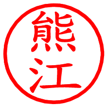 [朱肉の色]を選び、入力窓に“熊江”と入力して[生成]ボタンを押すと、印影が更新され、リンクから電子印鑑(デジタル印影)がダウンロードできます。 電子印鑑「熊江」の作り方文字表示が変なときや、文字バランスが悪いときは[字形切替]のチェックボックスでON/OFFを切り替え[生成]しなおしてください。 生成される画像は通常の印影「熊江.png」と、にじみを表現した少し太めの印影「熊江B.png」の背面透過PNG形式2種と、鮮明なPDF形式の印影「熊江.pdf」の計3種類です。 朱肉の微妙な色の違いを7色で表現しました。デフォルト(左端)は、JISが定めた朱肉の色のマンセル値(7.5R 5/14)をRGB値(217,66,54)に変換したものになっています。 「電子透かし」にチェックを入れて[生成]ボタンを押すと、タイムスタンプを透かしとして埋め込んだセキュアな電子印鑑が作れます。詳細は別ページの「電子透かしとタイムスタンプ」でご覧ください。 熊江さんの日付印が作れます。「日付スタンプメーカー」は、社内向けの書類に利用されることの多い日付印(データ印)が無料で作れるWebアプリケーションです。中段に日付が入り、上段と下段は、ともに8文字まで文字が入ります。 ![]() 古代文字で落款印が作れます。「落款スタンプメーカー」で作品を引き立たせる落款印が作れます。