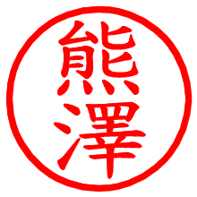 [朱肉の色]を選び、入力窓に“熊澤”と入力して[生成]ボタンを押すと、印影が更新され、リンクから電子印鑑(デジタル印影)がダウンロードできます。 電子印鑑「熊澤」の作り方文字表示が変なときや、文字バランスが悪いときは[字形切替]のチェックボックスでON/OFFを切り替え[生成]しなおしてください。 生成される画像は通常の印影「熊澤.png」と、にじみを表現した少し太めの印影「熊澤B.png」の背面透過PNG形式2種と、鮮明なPDF形式の印影「熊澤.pdf」の計3種類です。 朱肉の微妙な色の違いを7色で表現しました。デフォルト(左端)は、JISが定めた朱肉の色のマンセル値(7.5R 5/14)をRGB値(217,66,54)に変換したものになっています。 「電子透かし」にチェックを入れて[生成]ボタンを押すと、タイムスタンプを透かしとして埋め込んだセキュアな電子印鑑が作れます。詳細は別ページの「電子透かしとタイムスタンプ」でご覧ください。 熊澤さんの日付印が作れます。「日付スタンプメーカー」は、社内向けの書類に利用されることの多い日付印(データ印)が無料で作れるWebアプリケーションです。中段に日付が入り、上段と下段は、ともに8文字まで文字が入ります。 ![]() 古代文字で落款印が作れます。「落款スタンプメーカー」で作品を引き立たせる落款印が作れます。