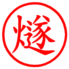 [朱肉の色]を選び、入力窓に“燧”と入力して[生成]ボタンを押すと、印影が更新され、リンクから電子印鑑(デジタル印影)がダウンロードできます。 電子印鑑「燧」の作り方文字表示が変なときや、文字バランスが悪いときは[字形切替]のチェックボックスでON/OFFを切り替え[生成]しなおしてください。 生成される画像は通常の印影「燧.png」と、にじみを表現した少し太めの印影「燧B.png」の背面透過PNG形式2種と、鮮明なPDF形式の印影「燧.pdf」の計3種類です。 朱肉の微妙な色の違いを7色で表現しました。デフォルト(左端)は、JISが定めた朱肉の色のマンセル値(7.5R 5/14)をRGB値(217,66,54)に変換したものになっています。 「電子透かし」にチェックを入れて[生成]ボタンを押すと、タイムスタンプを電子透かしとして埋め込んだセキュアな電子印鑑が作れます。詳細は別ページの「タイムスタンプと電子透かし」でご覧ください。 燧さんの日付印が作れます。「日付スタンプメーカー」は、社内向けの書類に利用されることの多い日付印(データ印)が無料で作れるWebアプリケーションです。中段に日付が入り、上段と下段は、ともに8文字まで文字が入ります。 ![]() 古代文字で落款印が作れます。「落款スタンプメーカー」で作品を引き立たせる落款印が作れます。