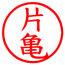 [朱肉の色]を選び、入力窓に“片亀”と入力して[生成]ボタンを押すと、印影が更新され、リンクから電子印鑑(デジタル印影)がダウンロードできます。 電子印鑑「片亀」の作り方文字表示が変なときや、文字バランスが悪いときは[字形切替]のチェックボックスでON/OFFを切り替え[生成]しなおしてください。 生成される画像は通常の印影「片亀.png」と、にじみを表現した少し太めの印影「片亀B.png」の背面透過PNG形式2種と、鮮明なPDF形式の印影「片亀.pdf」の計3種類です。 朱肉の微妙な色の違いを7色で表現しました。デフォルト(左端)は、JISが定めた朱肉の色のマンセル値(7.5R 5/14)をRGB値(217,66,54)に変換したものになっています。 「電子透かし」にチェックを入れて[生成]ボタンを押すと、タイムスタンプを電子透かしとして埋め込んだセキュアな電子印鑑が作れます。詳細は別ページの「タイムスタンプと電子透かし」でご覧ください。 片亀さんの日付印が作れます。「日付スタンプメーカー」は、社内向けの書類に利用されることの多い日付印(データ印)が無料で作れるWebアプリケーションです。中段に日付が入り、上段と下段は、ともに8文字まで文字が入ります。 ![]() 古代文字で落款印が作れます。「落款スタンプメーカー」で作品を引き立たせる落款印が作れます。