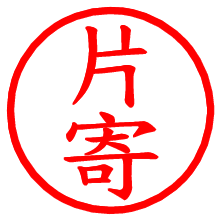 [朱肉の色]を選び、入力窓に“片寄”と入力して[生成]ボタンを押すと、印影が更新され、リンクから電子印鑑(デジタル印影)がダウンロードできます。 電子印鑑「片寄」の作り方文字表示が変なときや、文字バランスが悪いときは[字形切替]のチェックボックスでON/OFFを切り替え[生成]しなおしてください。 生成される画像は通常の印影「片寄.png」と、にじみを表現した少し太めの印影「片寄B.png」の背面透過PNG形式2種と、鮮明なPDF形式の印影「片寄.pdf」の計3種類です。 朱肉の微妙な色の違いを7色で表現しました。デフォルト(左端)は、JISが定めた朱肉の色のマンセル値(7.5R 5/14)をRGB値(217,66,54)に変換したものになっています。 「電子透かし」にチェックを入れて[生成]ボタンを押すと、タイムスタンプを透かしとして埋め込んだセキュアな電子印鑑が作れます。詳細は別ページの「電子透かしとタイムスタンプ」でご覧ください。 片寄さんの日付印が作れます。「日付スタンプメーカー」は、社内向けの書類に利用されることの多い日付印(データ印)が無料で作れるWebアプリケーションです。中段に日付が入り、上段と下段は、ともに8文字まで文字が入ります。 ![]() 古代文字で落款印が作れます。「落款スタンプメーカー」で作品を引き立たせる落款印が作れます。