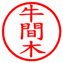 [朱肉の色]を選び、入力窓に“牛間木”と入力して[生成]ボタンを押すと、印影が更新され、リンクから電子印鑑(デジタル印影)がダウンロードできます。 電子印鑑「牛間木」の作り方文字表示が変なときや、文字バランスが悪いときは[字形切替]のチェックボックスでON/OFFを切り替え[生成]しなおしてください。 生成される画像は通常の印影「牛間木.png」と、にじみを表現した少し太めの印影「牛間木B.png」の背面透過PNG形式2種と、鮮明なPDF形式の印影「牛間木.pdf」の計3種類です。 朱肉の微妙な色の違いを7色で表現しました。デフォルト(左端)は、JISが定めた朱肉の色のマンセル値(7.5R 5/14)をRGB値(217,66,54)に変換したものになっています。 「電子透かし」にチェックを入れて[生成]ボタンを押すと、タイムスタンプを電子透かしとして埋め込んだセキュアな電子印鑑が作れます。詳細は別ページの「タイムスタンプと電子透かし」でご覧ください。 牛間木さんの日付印が作れます。「日付スタンプメーカー」は、社内向けの書類に利用されることの多い日付印(データ印)が無料で作れるWebアプリケーションです。中段に日付が入り、上段と下段は、ともに8文字まで文字が入ります。 ![]() 古代文字で落款印が作れます。「落款スタンプメーカー」で作品を引き立たせる落款印が作れます。