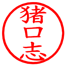 [朱肉の色]を選び、入力窓に“猪口志”と入力して[生成]ボタンを押すと、印影が更新され、リンクから電子印鑑(デジタル印影)がダウンロードできます。 電子印鑑「猪口志」の作り方文字表示が変なときや、文字バランスが悪いときは[字形切替]のチェックボックスでON/OFFを切り替え[生成]しなおしてください。 生成される画像は通常の印影「猪口志.png」と、にじみを表現した少し太めの印影「猪口志B.png」の背面透過PNG形式2種と、鮮明なPDF形式の印影「猪口志.pdf」の計3種類です。 朱肉の微妙な色の違いを7色で表現しました。デフォルト(左端)は、JISが定めた朱肉の色のマンセル値(7.5R 5/14)をRGB値(217,66,54)に変換したものになっています。 「電子透かし」にチェックを入れて[生成]ボタンを押すと、タイムスタンプを電子透かしとして埋め込んだセキュアな電子印鑑が作れます。詳細は別ページの「タイムスタンプと電子透かし」でご覧ください。 猪口志さんの日付印が作れます。「日付スタンプメーカー」は、社内向けの書類に利用されることの多い日付印(データ印)が無料で作れるWebアプリケーションです。中段に日付が入り、上段と下段は、ともに8文字まで文字が入ります。 ![]() 古代文字で落款印が作れます。「落款スタンプメーカー」で作品を引き立たせる落款印が作れます。