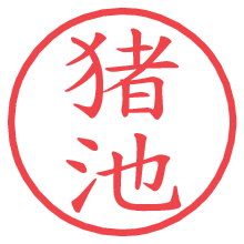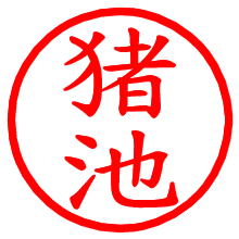 [朱肉の色]を選び、入力窓に“猪池”と入力して[生成]ボタンを押すと、印影が更新され、リンクから電子印鑑(デジタル印影)がダウンロードできます。 電子印鑑「猪池」の作り方文字表示が変なときや、文字バランスが悪いときは[字形切替]のチェックボックスでON/OFFを切り替え[生成]しなおしてください。 生成される画像は通常の印影「猪池.png」と、にじみを表現した少し太めの印影「猪池B.png」の背面透過PNG形式2種と、鮮明なPDF形式の印影「猪池.pdf」の計3種類です。 朱肉の微妙な色の違いを7色で表現しました。デフォルト(左端)は、JISが定めた朱肉の色のマンセル値(7.5R 5/14)をRGB値(217,66,54)に変換したものになっています。 「電子透かし」にチェックを入れて[生成]ボタンを押すと、タイムスタンプを電子透かしとして埋め込んだセキュアな電子印鑑が作れます。詳細は別ページの「タイムスタンプと電子透かし」でご覧ください。 猪池さんの日付印が作れます。「日付スタンプメーカー」は、社内向けの書類に利用されることの多い日付印(データ印)が無料で作れるWebアプリケーションです。中段に日付が入り、上段と下段は、ともに8文字まで文字が入ります。 ![]() 古代文字で落款印が作れます。「落款スタンプメーカー」で作品を引き立たせる落款印が作れます。