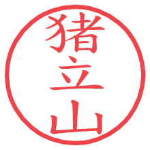 [朱肉の色]を選び、入力窓に“猪立山”と入力して[生成]ボタンを押すと、印影が更新され、リンクから電子印鑑(デジタル印影)がダウンロードできます。 電子印鑑「猪立山」の作り方文字表示が変なときや、文字バランスが悪いときは[字形切替]のチェックボックスでON/OFFを切り替え[生成]しなおしてください。 生成される画像は通常の印影「猪立山.png」と、にじみを表現した少し太めの印影「猪立山B.png」の背面透過PNG形式2種と、鮮明なPDF形式の印影「猪立山.pdf」の計3種類です。 朱肉の微妙な色の違いを7色で表現しました。デフォルト(左端)は、JISが定めた朱肉の色のマンセル値(7.5R 5/14)をRGB値(217,66,54)に変換したものになっています。 「電子透かし」にチェックを入れて[生成]ボタンを押すと、タイムスタンプを電子透かしとして埋め込んだセキュアな電子印鑑が作れます。詳細は別ページの「タイムスタンプと電子透かし」でご覧ください。 猪立山さんの日付印が作れます。「日付スタンプメーカー」は、社内向けの書類に利用されることの多い日付印(データ印)が無料で作れるWebアプリケーションです。中段に日付が入り、上段と下段は、ともに8文字まで文字が入ります。 ![]() 古代文字で落款印が作れます。「落款スタンプメーカー」で作品を引き立たせる落款印が作れます。