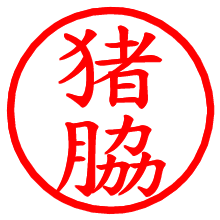 [朱肉の色]を選び、入力窓に“猪脇”と入力して[生成]ボタンを押すと、印影が更新され、リンクから電子印鑑(デジタル印影)がダウンロードできます。 電子印鑑「猪脇」の作り方文字表示が変なときや、文字バランスが悪いときは[字形切替]のチェックボックスでON/OFFを切り替え[生成]しなおしてください。 生成される画像は通常の印影「猪脇.png」と、にじみを表現した少し太めの印影「猪脇B.png」の背面透過PNG形式2種と、鮮明なPDF形式の印影「猪脇.pdf」の計3種類です。 朱肉の微妙な色の違いを7色で表現しました。デフォルト(左端)は、JISが定めた朱肉の色のマンセル値(7.5R 5/14)をRGB値(217,66,54)に変換したものになっています。 「電子透かし」にチェックを入れて[生成]ボタンを押すと、タイムスタンプを電子透かしとして埋め込んだセキュアな電子印鑑が作れます。詳細は別ページの「タイムスタンプと電子透かし」でご覧ください。 猪脇さんの日付印が作れます。「日付スタンプメーカー」は、社内向けの書類に利用されることの多い日付印(データ印)が無料で作れるWebアプリケーションです。中段に日付が入り、上段と下段は、ともに8文字まで文字が入ります。 ![]() 古代文字で落款印が作れます。「落款スタンプメーカー」で作品を引き立たせる落款印が作れます。