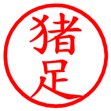 [朱肉の色]を選び、入力窓に“猪足”と入力して[生成]ボタンを押すと、印影が更新され、リンクから電子印鑑(デジタル印影)がダウンロードできます。 電子印鑑「猪足」の作り方文字表示が変なときや、文字バランスが悪いときは[字形切替]のチェックボックスでON/OFFを切り替え[生成]しなおしてください。 生成される画像は通常の印影「猪足.png」と、にじみを表現した少し太めの印影「猪足B.png」の背面透過PNG形式2種と、鮮明なPDF形式の印影「猪足.pdf」の計3種類です。 朱肉の微妙な色の違いを7色で表現しました。デフォルト(左端)は、JISが定めた朱肉の色のマンセル値(7.5R 5/14)をRGB値(217,66,54)に変換したものになっています。 「電子透かし」にチェックを入れて[生成]ボタンを押すと、タイムスタンプを電子透かしとして埋め込んだセキュアな電子印鑑が作れます。詳細は別ページの「タイムスタンプと電子透かし」でご覧ください。 猪足さんの日付印が作れます。「日付スタンプメーカー」は、社内向けの書類に利用されることの多い日付印(データ印)が無料で作れるWebアプリケーションです。中段に日付が入り、上段と下段は、ともに8文字まで文字が入ります。 ![]() 古代文字で落款印が作れます。「落款スタンプメーカー」で作品を引き立たせる落款印が作れます。