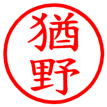 [朱肉の色]を選び、入力窓に“猶野”と入力して[生成]ボタンを押すと、印影が更新され、リンクから電子印鑑(デジタル印影)がダウンロードできます。 電子印鑑「猶野」の作り方文字表示が変なときや、文字バランスが悪いときは[字形切替]のチェックボックスでON/OFFを切り替え[生成]しなおしてください。 生成される画像は通常の印影「猶野.png」と、にじみを表現した少し太めの印影「猶野B.png」の背面透過PNG形式2種と、鮮明なPDF形式の印影「猶野.pdf」の計3種類です。 朱肉の微妙な色の違いを7色で表現しました。デフォルト(左端)は、JISが定めた朱肉の色のマンセル値(7.5R 5/14)をRGB値(217,66,54)に変換したものになっています。 「電子透かし」にチェックを入れて[生成]ボタンを押すと、タイムスタンプを電子透かしとして埋め込んだセキュアな電子印鑑が作れます。詳細は別ページの「タイムスタンプと電子透かし」でご覧ください。 猶野さんの日付印が作れます。「日付スタンプメーカー」は、社内向けの書類に利用されることの多い日付印(データ印)が無料で作れるWebアプリケーションです。中段に日付が入り、上段と下段は、ともに8文字まで文字が入ります。 ![]() 古代文字で落款印が作れます。「落款スタンプメーカー」で作品を引き立たせる落款印が作れます。