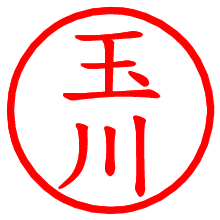 [朱肉の色]を選び、入力窓に“玉川”と入力して[生成]ボタンを押すと、印影が更新され、リンクから電子印鑑(デジタル印影)がダウンロードできます。 電子印鑑「玉川」の作り方文字表示が変なときや、文字バランスが悪いときは[字形切替]のチェックボックスでON/OFFを切り替え[生成]しなおしてください。 生成される画像は通常の印影「玉川.png」と、にじみを表現した少し太めの印影「玉川B.png」の背面透過PNG形式2種と、鮮明なPDF形式の印影「玉川.pdf」の計3種類です。 朱肉の微妙な色の違いを7色で表現しました。デフォルト(左端)は、JISが定めた朱肉の色のマンセル値(7.5R 5/14)をRGB値(217,66,54)に変換したものになっています。 「電子透かし」にチェックを入れて[生成]ボタンを押すと、タイムスタンプを透かしとして埋め込んだセキュアな電子印鑑が作れます。詳細は別ページの「電子透かしとタイムスタンプ」でご覧ください。 玉川さんの日付印が作れます。「日付スタンプメーカー」は、社内向けの書類に利用されることの多い日付印(データ印)が無料で作れるWebアプリケーションです。中段に日付が入り、上段と下段は、ともに8文字まで文字が入ります。 ![]() 古代文字で落款印が作れます。「落款スタンプメーカー」で作品を引き立たせる落款印が作れます。