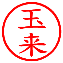 [朱肉の色]を選び、入力窓に“玉来”と入力して[生成]ボタンを押すと、印影が更新され、リンクから電子印鑑(デジタル印影)がダウンロードできます。 電子印鑑「玉来」の作り方文字表示が変なときや、文字バランスが悪いときは[字形切替]のチェックボックスでON/OFFを切り替え[生成]しなおしてください。 生成される画像は通常の印影「玉来.png」と、にじみを表現した少し太めの印影「玉来B.png」の背面透過PNG形式2種と、鮮明なPDF形式の印影「玉来.pdf」の計3種類です。 朱肉の微妙な色の違いを7色で表現しました。デフォルト(左端)は、JISが定めた朱肉の色のマンセル値(7.5R 5/14)をRGB値(217,66,54)に変換したものになっています。 「電子透かし」にチェックを入れて[生成]ボタンを押すと、タイムスタンプを電子透かしとして埋め込んだセキュアな電子印鑑が作れます。詳細は別ページの「タイムスタンプと電子透かし」でご覧ください。 玉来さんの日付印が作れます。「日付スタンプメーカー」は、社内向けの書類に利用されることの多い日付印(データ印)が無料で作れるWebアプリケーションです。中段に日付が入り、上段と下段は、ともに8文字まで文字が入ります。 ![]() 古代文字で落款印が作れます。「落款スタンプメーカー」で作品を引き立たせる落款印が作れます。