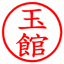 [朱肉の色]を選び、入力窓に“玉館”と入力して[生成]ボタンを押すと、印影が更新され、リンクから電子印鑑(デジタル印影)がダウンロードできます。 電子印鑑「玉館」の作り方文字表示が変なときや、文字バランスが悪いときは[字形切替]のチェックボックスでON/OFFを切り替え[生成]しなおしてください。 生成される画像は通常の印影「玉館.png」と、にじみを表現した少し太めの印影「玉館B.png」の背面透過PNG形式2種と、鮮明なPDF形式の印影「玉館.pdf」の計3種類です。 朱肉の微妙な色の違いを7色で表現しました。デフォルト(左端)は、JISが定めた朱肉の色のマンセル値(7.5R 5/14)をRGB値(217,66,54)に変換したものになっています。 「電子透かし」にチェックを入れて[生成]ボタンを押すと、タイムスタンプを電子透かしとして埋め込んだセキュアな電子印鑑が作れます。詳細は別ページの「タイムスタンプと電子透かし」でご覧ください。 玉館さんの日付印が作れます。「日付スタンプメーカー」は、社内向けの書類に利用されることの多い日付印(データ印)が無料で作れるWebアプリケーションです。中段に日付が入り、上段と下段は、ともに8文字まで文字が入ります。 ![]() 古代文字で落款印が作れます。「落款スタンプメーカー」で作品を引き立たせる落款印が作れます。