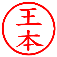[朱肉の色]を選び、入力窓に“王本”と入力して[生成]ボタンを押すと、印影が更新され、リンクから電子印鑑(デジタル印影)がダウンロードできます。 電子印鑑「王本」の作り方文字表示が変なときや、文字バランスが悪いときは[字形切替]のチェックボックスでON/OFFを切り替え[生成]しなおしてください。 生成される画像は通常の印影「王本.png」と、にじみを表現した少し太めの印影「王本B.png」の背面透過PNG形式2種と、鮮明なPDF形式の印影「王本.pdf」の計3種類です。 朱肉の微妙な色の違いを7色で表現しました。デフォルト(左端)は、JISが定めた朱肉の色のマンセル値(7.5R 5/14)をRGB値(217,66,54)に変換したものになっています。 「電子透かし」にチェックを入れて[生成]ボタンを押すと、タイムスタンプを電子透かしとして埋め込んだセキュアな電子印鑑が作れます。詳細は別ページの「タイムスタンプと電子透かし」でご覧ください。 王本さんの日付印が作れます。「日付スタンプメーカー」は、社内向けの書類に利用されることの多い日付印(データ印)が無料で作れるWebアプリケーションです。中段に日付が入り、上段と下段は、ともに8文字まで文字が入ります。 ![]() 古代文字で落款印が作れます。「落款スタンプメーカー」で作品を引き立たせる落款印が作れます。