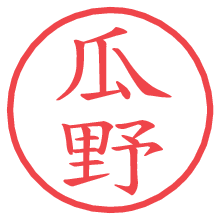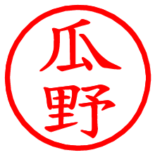 [朱肉の色]を選び、入力窓に“瓜野”と入力して[生成]ボタンを押すと、印影が更新され、リンクから電子印鑑(デジタル印影)がダウンロードできます。 電子印鑑「瓜野」の作り方文字表示が変なときや、文字バランスが悪いときは[字形切替]のチェックボックスでON/OFFを切り替え[生成]しなおしてください。 生成される画像は通常の印影「瓜野.png」と、にじみを表現した少し太めの印影「瓜野B.png」の背面透過PNG形式2種と、鮮明なPDF形式の印影「瓜野.pdf」の計3種類です。 朱肉の微妙な色の違いを7色で表現しました。デフォルト(左端)は、JISが定めた朱肉の色のマンセル値(7.5R 5/14)をRGB値(217,66,54)に変換したものになっています。 「電子透かし」にチェックを入れて[生成]ボタンを押すと、タイムスタンプを電子透かしとして埋め込んだセキュアな電子印鑑が作れます。詳細は別ページの「タイムスタンプと電子透かし」でご覧ください。 瓜野さんの日付印が作れます。「日付スタンプメーカー」は、社内向けの書類に利用されることの多い日付印(データ印)が無料で作れるWebアプリケーションです。中段に日付が入り、上段と下段は、ともに8文字まで文字が入ります。 ![]() 古代文字で落款印が作れます。「落款スタンプメーカー」で作品を引き立たせる落款印が作れます。