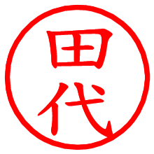 [朱肉の色]を選び、入力窓に“田代”と入力して[生成]ボタンを押すと、印影が更新され、リンクから電子印鑑(デジタル印影)がダウンロードできます。 電子印鑑「田代」の作り方文字表示が変なときや、文字バランスが悪いときは[字形切替]のチェックボックスでON/OFFを切り替え[生成]しなおしてください。 生成される画像は通常の印影「田代.png」と、にじみを表現した少し太めの印影「田代B.png」の背面透過PNG形式2種と、鮮明なPDF形式の印影「田代.pdf」の計3種類です。 朱肉の微妙な色の違いを7色で表現しました。デフォルト(左端)は、JISが定めた朱肉の色のマンセル値(7.5R 5/14)をRGB値(217,66,54)に変換したものになっています。 「電子透かし」にチェックを入れて[生成]ボタンを押すと、タイムスタンプを透かしとして埋め込んだセキュアな電子印鑑が作れます。詳細は別ページの「電子透かしとタイムスタンプ」でご覧ください。 田代さんの日付印が作れます。「日付スタンプメーカー」は、社内向けの書類に利用されることの多い日付印(データ印)が無料で作れるWebアプリケーションです。中段に日付が入り、上段と下段は、ともに8文字まで文字が入ります。 ![]() 古代文字で落款印が作れます。「落款スタンプメーカー」で作品を引き立たせる落款印が作れます。