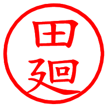 [朱肉の色]を選び、入力窓に“田廻”と入力して[生成]ボタンを押すと、印影が更新され、リンクから電子印鑑(デジタル印影)がダウンロードできます。 電子印鑑「田廻」の作り方文字表示が変なときや、文字バランスが悪いときは[字形切替]のチェックボックスでON/OFFを切り替え[生成]しなおしてください。 生成される画像は通常の印影「田廻.png」と、にじみを表現した少し太めの印影「田廻B.png」の背面透過PNG形式2種と、鮮明なPDF形式の印影「田廻.pdf」の計3種類です。 朱肉の微妙な色の違いを7色で表現しました。デフォルト(左端)は、JISが定めた朱肉の色のマンセル値(7.5R 5/14)をRGB値(217,66,54)に変換したものになっています。 「電子透かし」にチェックを入れて[生成]ボタンを押すと、タイムスタンプを電子透かしとして埋め込んだセキュアな電子印鑑が作れます。詳細は別ページの「タイムスタンプと電子透かし」でご覧ください。 田廻さんの日付印が作れます。「日付スタンプメーカー」は、社内向けの書類に利用されることの多い日付印(データ印)が無料で作れるWebアプリケーションです。中段に日付が入り、上段と下段は、ともに8文字まで文字が入ります。 ![]() 古代文字で落款印が作れます。「落款スタンプメーカー」で作品を引き立たせる落款印が作れます。