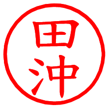 [朱肉の色]を選び、入力窓に“田沖”と入力して[生成]ボタンを押すと、印影が更新され、リンクから電子印鑑(デジタル印影)がダウンロードできます。 電子印鑑「田沖」の作り方文字表示が変なときや、文字バランスが悪いときは[字形切替]のチェックボックスでON/OFFを切り替え[生成]しなおしてください。 生成される画像は通常の印影「田沖.png」と、にじみを表現した少し太めの印影「田沖B.png」の背面透過PNG形式2種と、鮮明なPDF形式の印影「田沖.pdf」の計3種類です。 朱肉の微妙な色の違いを7色で表現しました。デフォルト(左端)は、JISが定めた朱肉の色のマンセル値(7.5R 5/14)をRGB値(217,66,54)に変換したものになっています。 「電子透かし」にチェックを入れて[生成]ボタンを押すと、タイムスタンプを透かしとして埋め込んだセキュアな電子印鑑が作れます。詳細は別ページの「電子透かしとタイムスタンプ」でご覧ください。 田沖さんの日付印が作れます。「日付スタンプメーカー」は、社内向けの書類に利用されることの多い日付印(データ印)が無料で作れるWebアプリケーションです。中段に日付が入り、上段と下段は、ともに8文字まで文字が入ります。 ![]() 古代文字で落款印が作れます。「落款スタンプメーカー」で作品を引き立たせる落款印が作れます。