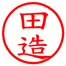 [朱肉の色]を選び、入力窓に“田造”と入力して[生成]ボタンを押すと、印影が更新され、リンクから電子印鑑(デジタル印影)がダウンロードできます。 電子印鑑「田造」の作り方文字表示が変なときや、文字バランスが悪いときは[字形切替]のチェックボックスでON/OFFを切り替え[生成]しなおしてください。 生成される画像は通常の印影「田造.png」と、にじみを表現した少し太めの印影「田造B.png」の背面透過PNG形式2種と、鮮明なPDF形式の印影「田造.pdf」の計3種類です。 朱肉の微妙な色の違いを7色で表現しました。デフォルト(左端)は、JISが定めた朱肉の色のマンセル値(7.5R 5/14)をRGB値(217,66,54)に変換したものになっています。 「電子透かし」にチェックを入れて[生成]ボタンを押すと、タイムスタンプを電子透かしとして埋め込んだセキュアな電子印鑑が作れます。詳細は別ページの「タイムスタンプと電子透かし」でご覧ください。 田造さんの日付印が作れます。「日付スタンプメーカー」は、社内向けの書類に利用されることの多い日付印(データ印)が無料で作れるWebアプリケーションです。中段に日付が入り、上段と下段は、ともに8文字まで文字が入ります。 ![]() 古代文字で落款印が作れます。「落款スタンプメーカー」で作品を引き立たせる落款印が作れます。