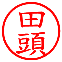 [朱肉の色]を選び、入力窓に“田頭”と入力して[生成]ボタンを押すと、印影が更新され、リンクから電子印鑑(デジタル印影)がダウンロードできます。 電子印鑑「田頭」の作り方文字表示が変なときや、文字バランスが悪いときは[字形切替]のチェックボックスでON/OFFを切り替え[生成]しなおしてください。 生成される画像は通常の印影「田頭.png」と、にじみを表現した少し太めの印影「田頭B.png」の背面透過PNG形式2種と、鮮明なPDF形式の印影「田頭.pdf」の計3種類です。 朱肉の微妙な色の違いを7色で表現しました。デフォルト(左端)は、JISが定めた朱肉の色のマンセル値(7.5R 5/14)をRGB値(217,66,54)に変換したものになっています。 「電子透かし」にチェックを入れて[生成]ボタンを押すと、タイムスタンプを透かしとして埋め込んだセキュアな電子印鑑が作れます。詳細は別ページの「電子透かしとタイムスタンプ」でご覧ください。 田頭さんの日付印が作れます。「日付スタンプメーカー」は、社内向けの書類に利用されることの多い日付印(データ印)が無料で作れるWebアプリケーションです。中段に日付が入り、上段と下段は、ともに8文字まで文字が入ります。 ![]() 古代文字で落款印が作れます。「落款スタンプメーカー」で作品を引き立たせる落款印が作れます。