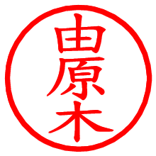 [朱肉の色]を選び、入力窓に“由原木”と入力して[生成]ボタンを押すと、印影が更新され、リンクから電子印鑑(デジタル印影)がダウンロードできます。 電子印鑑「由原木」の作り方文字表示が変なときや、文字バランスが悪いときは[字形切替]のチェックボックスでON/OFFを切り替え[生成]しなおしてください。 生成される画像は通常の印影「由原木.png」と、にじみを表現した少し太めの印影「由原木B.png」の背面透過PNG形式2種と、鮮明なPDF形式の印影「由原木.pdf」の計3種類です。 朱肉の微妙な色の違いを7色で表現しました。デフォルト(左端)は、JISが定めた朱肉の色のマンセル値(7.5R 5/14)をRGB値(217,66,54)に変換したものになっています。 「電子透かし」にチェックを入れて[生成]ボタンを押すと、タイムスタンプを電子透かしとして埋め込んだセキュアな電子印鑑が作れます。詳細は別ページの「タイムスタンプと電子透かし」でご覧ください。 由原木さんの日付印が作れます。「日付スタンプメーカー」は、社内向けの書類に利用されることの多い日付印(データ印)が無料で作れるWebアプリケーションです。中段に日付が入り、上段と下段は、ともに8文字まで文字が入ります。 ![]() 古代文字で落款印が作れます。「落款スタンプメーカー」で作品を引き立たせる落款印が作れます。