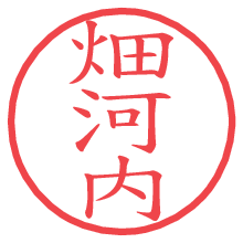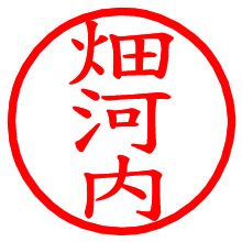 [朱肉の色]を選び、入力窓に“畑河内”と入力して[生成]ボタンを押すと、印影が更新され、リンクから電子印鑑(デジタル印影)がダウンロードできます。 電子印鑑「畑河内」の作り方文字表示が変なときや、文字バランスが悪いときは[字形切替]のチェックボックスでON/OFFを切り替え[生成]しなおしてください。 生成される画像は通常の印影「畑河内.png」と、にじみを表現した少し太めの印影「畑河内B.png」の背面透過PNG形式2種と、鮮明なPDF形式の印影「畑河内.pdf」の計3種類です。 朱肉の微妙な色の違いを7色で表現しました。デフォルト(左端)は、JISが定めた朱肉の色のマンセル値(7.5R 5/14)をRGB値(217,66,54)に変換したものになっています。 「電子透かし」にチェックを入れて[生成]ボタンを押すと、タイムスタンプを電子透かしとして埋め込んだセキュアな電子印鑑が作れます。詳細は別ページの「タイムスタンプと電子透かし」でご覧ください。 畑河内さんの日付印が作れます。「日付スタンプメーカー」は、社内向けの書類に利用されることの多い日付印(データ印)が無料で作れるWebアプリケーションです。中段に日付が入り、上段と下段は、ともに8文字まで文字が入ります。 ![]() 古代文字で落款印が作れます。「落款スタンプメーカー」で作品を引き立たせる落款印が作れます。