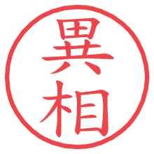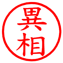 [朱肉の色]を選び、入力窓に“異相”と入力して[生成]ボタンを押すと、印影が更新され、リンクから電子印鑑(デジタル印影)がダウンロードできます。 電子印鑑「異相」の作り方文字表示が変なときや、文字バランスが悪いときは[字形切替]のチェックボックスでON/OFFを切り替え[生成]しなおしてください。 生成される画像は通常の印影「異相.png」と、にじみを表現した少し太めの印影「異相B.png」の背面透過PNG形式2種と、鮮明なPDF形式の印影「異相.pdf」の計3種類です。 朱肉の微妙な色の違いを7色で表現しました。デフォルト(左端)は、JISが定めた朱肉の色のマンセル値(7.5R 5/14)をRGB値(217,66,54)に変換したものになっています。 「電子透かし」にチェックを入れて[生成]ボタンを押すと、タイムスタンプを電子透かしとして埋め込んだセキュアな電子印鑑が作れます。詳細は別ページの「タイムスタンプと電子透かし」でご覧ください。 異相さんの日付印が作れます。「日付スタンプメーカー」は、社内向けの書類に利用されることの多い日付印(データ印)が無料で作れるWebアプリケーションです。中段に日付が入り、上段と下段は、ともに8文字まで文字が入ります。 ![]() 古代文字で落款印が作れます。「落款スタンプメーカー」で作品を引き立たせる落款印が作れます。