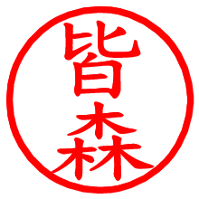 [朱肉の色]を選び、入力窓に“皆森”と入力して[生成]ボタンを押すと、印影が更新され、リンクから電子印鑑(デジタル印影)がダウンロードできます。 電子印鑑「皆森」の作り方文字表示が変なときや、文字バランスが悪いときは[字形切替]のチェックボックスでON/OFFを切り替え[生成]しなおしてください。 生成される画像は通常の印影「皆森.png」と、にじみを表現した少し太めの印影「皆森B.png」の背面透過PNG形式2種と、鮮明なPDF形式の印影「皆森.pdf」の計3種類です。 朱肉の微妙な色の違いを7色で表現しました。デフォルト(左端)は、JISが定めた朱肉の色のマンセル値(7.5R 5/14)をRGB値(217,66,54)に変換したものになっています。 「電子透かし」にチェックを入れて[生成]ボタンを押すと、タイムスタンプを電子透かしとして埋め込んだセキュアな電子印鑑が作れます。詳細は別ページの「タイムスタンプと電子透かし」でご覧ください。 皆森さんの日付印が作れます。「日付スタンプメーカー」は、社内向けの書類に利用されることの多い日付印(データ印)が無料で作れるWebアプリケーションです。中段に日付が入り、上段と下段は、ともに8文字まで文字が入ります。 ![]() 古代文字で落款印が作れます。「落款スタンプメーカー」で作品を引き立たせる落款印が作れます。
