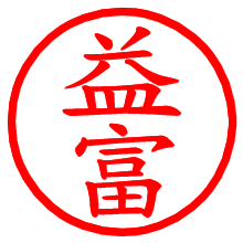 [朱肉の色]を選び、入力窓に“益富”と入力して[生成]ボタンを押すと、印影が更新され、リンクから電子印鑑(デジタル印影)がダウンロードできます。 電子印鑑「益富」の作り方文字表示が変なときや、文字バランスが悪いときは[字形切替]のチェックボックスでON/OFFを切り替え[生成]しなおしてください。 生成される画像は通常の印影「益富.png」と、にじみを表現した少し太めの印影「益富B.png」の背面透過PNG形式2種と、鮮明なPDF形式の印影「益富.pdf」の計3種類です。 朱肉の微妙な色の違いを7色で表現しました。デフォルト(左端)は、JISが定めた朱肉の色のマンセル値(7.5R 5/14)をRGB値(217,66,54)に変換したものになっています。 「電子透かし」にチェックを入れて[生成]ボタンを押すと、タイムスタンプを透かしとして埋め込んだセキュアな電子印鑑が作れます。詳細は別ページの「電子透かしとタイムスタンプ」でご覧ください。 益富さんの日付印が作れます。「日付スタンプメーカー」は、社内向けの書類に利用されることの多い日付印(データ印)が無料で作れるWebアプリケーションです。中段に日付が入り、上段と下段は、ともに8文字まで文字が入ります。 ![]() 古代文字で落款印が作れます。「落款スタンプメーカー」で作品を引き立たせる落款印が作れます。