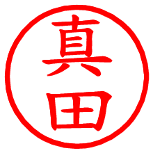 [朱肉の色]を選び、入力窓に“真田”と入力して[生成]ボタンを押すと、印影が更新され、リンクから電子印鑑(デジタル印影)がダウンロードできます。 電子印鑑「真田」の作り方文字表示が変なときや、文字バランスが悪いときは[字形切替]のチェックボックスでON/OFFを切り替え[生成]しなおしてください。 生成される画像は通常の印影「真田.png」と、にじみを表現した少し太めの印影「真田B.png」の背面透過PNG形式2種と、鮮明なPDF形式の印影「真田.pdf」の計3種類です。 朱肉の微妙な色の違いを7色で表現しました。デフォルト(左端)は、JISが定めた朱肉の色のマンセル値(7.5R 5/14)をRGB値(217,66,54)に変換したものになっています。 「電子透かし」にチェックを入れて[生成]ボタンを押すと、タイムスタンプを透かしとして埋め込んだセキュアな電子印鑑が作れます。詳細は別ページの「電子透かしとタイムスタンプ」でご覧ください。 真田さんの日付印が作れます。「日付スタンプメーカー」は、社内向けの書類に利用されることの多い日付印(データ印)が無料で作れるWebアプリケーションです。中段に日付が入り、上段と下段は、ともに8文字まで文字が入ります。 ![]() 古代文字で落款印が作れます。「落款スタンプメーカー」で作品を引き立たせる落款印が作れます。
