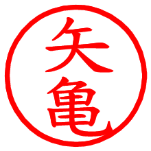 [朱肉の色]を選び、入力窓に“矢亀”と入力して[生成]ボタンを押すと、印影が更新され、リンクから電子印鑑(デジタル印影)がダウンロードできます。 電子印鑑「矢亀」の作り方文字表示が変なときや、文字バランスが悪いときは[字形切替]のチェックボックスでON/OFFを切り替え[生成]しなおしてください。 生成される画像は通常の印影「矢亀.png」と、にじみを表現した少し太めの印影「矢亀B.png」の背面透過PNG形式2種と、鮮明なPDF形式の印影「矢亀.pdf」の計3種類です。 朱肉の微妙な色の違いを7色で表現しました。デフォルト(左端)は、JISが定めた朱肉の色のマンセル値(7.5R 5/14)をRGB値(217,66,54)に変換したものになっています。 「電子透かし」にチェックを入れて[生成]ボタンを押すと、タイムスタンプを電子透かしとして埋め込んだセキュアな電子印鑑が作れます。詳細は別ページの「タイムスタンプと電子透かし」でご覧ください。 矢亀さんの日付印が作れます。「日付スタンプメーカー」は、社内向けの書類に利用されることの多い日付印(データ印)が無料で作れるWebアプリケーションです。中段に日付が入り、上段と下段は、ともに8文字まで文字が入ります。 ![]() 古代文字で落款印が作れます。「落款スタンプメーカー」で作品を引き立たせる落款印が作れます。