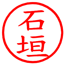 [朱肉の色]を選び、入力窓に“石垣”と入力して[生成]ボタンを押すと、印影が更新され、リンクから電子印鑑(デジタル印影)がダウンロードできます。 電子印鑑「石垣」の作り方文字表示が変なときや、文字バランスが悪いときは[字形切替]のチェックボックスでON/OFFを切り替え[生成]しなおしてください。 生成される画像は通常の印影「石垣.png」と、にじみを表現した少し太めの印影「石垣B.png」の背面透過PNG形式2種と、鮮明なPDF形式の印影「石垣.pdf」の計3種類です。 朱肉の微妙な色の違いを7色で表現しました。デフォルト(左端)は、JISが定めた朱肉の色のマンセル値(7.5R 5/14)をRGB値(217,66,54)に変換したものになっています。 「電子透かし」にチェックを入れて[生成]ボタンを押すと、タイムスタンプを透かしとして埋め込んだセキュアな電子印鑑が作れます。詳細は別ページの「電子透かしとタイムスタンプ」でご覧ください。 石垣さんの日付印が作れます。「日付スタンプメーカー」は、社内向けの書類に利用されることの多い日付印(データ印)が無料で作れるWebアプリケーションです。中段に日付が入り、上段と下段は、ともに8文字まで文字が入ります。 ![]() 古代文字で落款印が作れます。「落款スタンプメーカー」で作品を引き立たせる落款印が作れます。