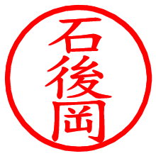 [朱肉の色]を選び、入力窓に“石後岡”と入力して[生成]ボタンを押すと、印影が更新され、リンクから電子印鑑(デジタル印影)がダウンロードできます。 電子印鑑「石後岡」の作り方文字表示が変なときや、文字バランスが悪いときは[字形切替]のチェックボックスでON/OFFを切り替え[生成]しなおしてください。 生成される画像は通常の印影「石後岡.png」と、にじみを表現した少し太めの印影「石後岡B.png」の背面透過PNG形式2種と、鮮明なPDF形式の印影「石後岡.pdf」の計3種類です。 朱肉の微妙な色の違いを7色で表現しました。デフォルト(左端)は、JISが定めた朱肉の色のマンセル値(7.5R 5/14)をRGB値(217,66,54)に変換したものになっています。 「電子透かし」にチェックを入れて[生成]ボタンを押すと、タイムスタンプを電子透かしとして埋め込んだセキュアな電子印鑑が作れます。詳細は別ページの「タイムスタンプと電子透かし」でご覧ください。 石後岡さんの日付印が作れます。「日付スタンプメーカー」は、社内向けの書類に利用されることの多い日付印(データ印)が無料で作れるWebアプリケーションです。中段に日付が入り、上段と下段は、ともに8文字まで文字が入ります。 ![]() 古代文字で落款印が作れます。「落款スタンプメーカー」で作品を引き立たせる落款印が作れます。