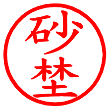[朱肉の色]を選び、入力窓に“砂埜”と入力して[生成]ボタンを押すと、印影が更新され、リンクから電子印鑑(デジタル印影)がダウンロードできます。 電子印鑑「砂埜」の作り方文字表示が変なときや、文字バランスが悪いときは[字形切替]のチェックボックスでON/OFFを切り替え[生成]しなおしてください。 生成される画像は通常の印影「砂埜.png」と、にじみを表現した少し太めの印影「砂埜B.png」の背面透過PNG形式2種と、鮮明なPDF形式の印影「砂埜.pdf」の計3種類です。 朱肉の微妙な色の違いを7色で表現しました。デフォルト(左端)は、JISが定めた朱肉の色のマンセル値(7.5R 5/14)をRGB値(217,66,54)に変換したものになっています。 「電子透かし」にチェックを入れて[生成]ボタンを押すと、タイムスタンプを電子透かしとして埋め込んだセキュアな電子印鑑が作れます。詳細は別ページの「タイムスタンプと電子透かし」でご覧ください。 砂埜さんの日付印が作れます。「日付スタンプメーカー」は、社内向けの書類に利用されることの多い日付印(データ印)が無料で作れるWebアプリケーションです。中段に日付が入り、上段と下段は、ともに8文字まで文字が入ります。 ![]() 古代文字で落款印が作れます。「落款スタンプメーカー」で作品を引き立たせる落款印が作れます。