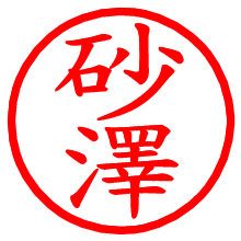 [朱肉の色]を選び、入力窓に“砂澤”と入力して[生成]ボタンを押すと、印影が更新され、リンクから電子印鑑(デジタル印影)がダウンロードできます。 電子印鑑「砂澤」の作り方文字表示が変なときや、文字バランスが悪いときは[字形切替]のチェックボックスでON/OFFを切り替え[生成]しなおしてください。 生成される画像は通常の印影「砂澤.png」と、にじみを表現した少し太めの印影「砂澤B.png」の背面透過PNG形式2種と、鮮明なPDF形式の印影「砂澤.pdf」の計3種類です。 朱肉の微妙な色の違いを7色で表現しました。デフォルト(左端)は、JISが定めた朱肉の色のマンセル値(7.5R 5/14)をRGB値(217,66,54)に変換したものになっています。 「電子透かし」にチェックを入れて[生成]ボタンを押すと、タイムスタンプを透かしとして埋め込んだセキュアな電子印鑑が作れます。詳細は別ページの「電子透かしとタイムスタンプ」でご覧ください。 砂澤さんの日付印が作れます。「日付スタンプメーカー」は、社内向けの書類に利用されることの多い日付印(データ印)が無料で作れるWebアプリケーションです。中段に日付が入り、上段と下段は、ともに8文字まで文字が入ります。 ![]() 古代文字で落款印が作れます。「落款スタンプメーカー」で作品を引き立たせる落款印が作れます。