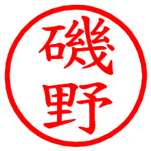 [朱肉の色]を選び、入力窓に“磯野”と入力して[生成]ボタンを押すと、印影が更新され、リンクから電子印鑑(デジタル印影)がダウンロードできます。 電子印鑑「磯野」の作り方文字表示が変なときや、文字バランスが悪いときは[字形切替]のチェックボックスでON/OFFを切り替え[生成]しなおしてください。 生成される画像は通常の印影「磯野.png」と、にじみを表現した少し太めの印影「磯野B.png」の背面透過PNG形式2種と、鮮明なPDF形式の印影「磯野.pdf」の計3種類です。 朱肉の微妙な色の違いを7色で表現しました。デフォルト(左端)は、JISが定めた朱肉の色のマンセル値(7.5R 5/14)をRGB値(217,66,54)に変換したものになっています。 「電子透かし」にチェックを入れて[生成]ボタンを押すと、タイムスタンプを透かしとして埋め込んだセキュアな電子印鑑が作れます。詳細は別ページの「電子透かしとタイムスタンプ」でご覧ください。 磯野さんの日付印が作れます。「日付スタンプメーカー」は、社内向けの書類に利用されることの多い日付印(データ印)が無料で作れるWebアプリケーションです。中段に日付が入り、上段と下段は、ともに8文字まで文字が入ります。 ![]() 古代文字で落款印が作れます。「落款スタンプメーカー」で作品を引き立たせる落款印が作れます。
