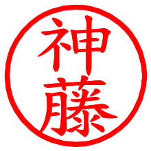 [朱肉の色]を選び、入力窓に“神藤”と入力して[生成]ボタンを押すと、印影が更新され、リンクから電子印鑑(デジタル印影)がダウンロードできます。 電子印鑑「神藤」の作り方文字表示が変なときや、文字バランスが悪いときは[字形切替]のチェックボックスでON/OFFを切り替え[生成]しなおしてください。 生成される画像は通常の印影「神藤.png」と、にじみを表現した少し太めの印影「神藤B.png」の背面透過PNG形式2種と、鮮明なPDF形式の印影「神藤.pdf」の計3種類です。 朱肉の微妙な色の違いを7色で表現しました。デフォルト(左端)は、JISが定めた朱肉の色のマンセル値(7.5R 5/14)をRGB値(217,66,54)に変換したものになっています。 「電子透かし」にチェックを入れて[生成]ボタンを押すと、タイムスタンプを透かしとして埋め込んだセキュアな電子印鑑が作れます。詳細は別ページの「電子透かしとタイムスタンプ」でご覧ください。 神藤さんの日付印が作れます。「日付スタンプメーカー」は、社内向けの書類に利用されることの多い日付印(データ印)が無料で作れるWebアプリケーションです。中段に日付が入り、上段と下段は、ともに8文字まで文字が入ります。 ![]() 古代文字で落款印が作れます。「落款スタンプメーカー」で作品を引き立たせる落款印が作れます。
