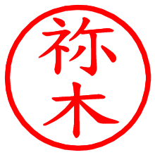 [朱肉の色]を選び、入力窓に“祢木”と入力して[生成]ボタンを押すと、印影が更新され、リンクから電子印鑑(デジタル印影)がダウンロードできます。 電子印鑑「祢木」の作り方文字表示が変なときや、文字バランスが悪いときは[字形切替]のチェックボックスでON/OFFを切り替え[生成]しなおしてください。 生成される画像は通常の印影「祢木.png」と、にじみを表現した少し太めの印影「祢木B.png」の背面透過PNG形式2種と、鮮明なPDF形式の印影「祢木.pdf」の計3種類です。 朱肉の微妙な色の違いを7色で表現しました。デフォルト(左端)は、JISが定めた朱肉の色のマンセル値(7.5R 5/14)をRGB値(217,66,54)に変換したものになっています。 「電子透かし」にチェックを入れて[生成]ボタンを押すと、タイムスタンプを電子透かしとして埋め込んだセキュアな電子印鑑が作れます。詳細は別ページの「タイムスタンプと電子透かし」でご覧ください。 祢木さんの日付印が作れます。「日付スタンプメーカー」は、社内向けの書類に利用されることの多い日付印(データ印)が無料で作れるWebアプリケーションです。中段に日付が入り、上段と下段は、ともに8文字まで文字が入ります。 ![]() 古代文字で落款印が作れます。「落款スタンプメーカー」で作品を引き立たせる落款印が作れます。