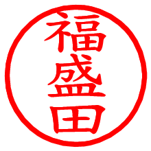 [朱肉の色]を選び、入力窓に“福盛田”と入力して[生成]ボタンを押すと、印影が更新され、リンクから電子印鑑(デジタル印影)がダウンロードできます。 電子印鑑「福盛田」の作り方文字表示が変なときや、文字バランスが悪いときは[字形切替]のチェックボックスでON/OFFを切り替え[生成]しなおしてください。 生成される画像は通常の印影「福盛田.png」と、にじみを表現した少し太めの印影「福盛田B.png」の背面透過PNG形式2種と、鮮明なPDF形式の印影「福盛田.pdf」の計3種類です。 朱肉の微妙な色の違いを7色で表現しました。デフォルト(左端)は、JISが定めた朱肉の色のマンセル値(7.5R 5/14)をRGB値(217,66,54)に変換したものになっています。 「電子透かし」にチェックを入れて[生成]ボタンを押すと、タイムスタンプを電子透かしとして埋め込んだセキュアな電子印鑑が作れます。詳細は別ページの「タイムスタンプと電子透かし」でご覧ください。 福盛田さんの日付印が作れます。「日付スタンプメーカー」は、社内向けの書類に利用されることの多い日付印(データ印)が無料で作れるWebアプリケーションです。中段に日付が入り、上段と下段は、ともに8文字まで文字が入ります。 ![]() 古代文字で落款印が作れます。「落款スタンプメーカー」で作品を引き立たせる落款印が作れます。