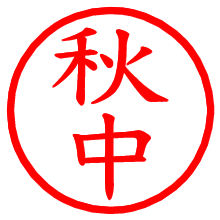 [朱肉の色]を選び、入力窓に“秋中”と入力して[生成]ボタンを押すと、印影が更新され、リンクから電子印鑑(デジタル印影)がダウンロードできます。 電子印鑑「秋中」の作り方文字表示が変なときや、文字バランスが悪いときは[字形切替]のチェックボックスでON/OFFを切り替え[生成]しなおしてください。 生成される画像は通常の印影「秋中.png」と、にじみを表現した少し太めの印影「秋中B.png」の背面透過PNG形式2種と、鮮明なPDF形式の印影「秋中.pdf」の計3種類です。 朱肉の微妙な色の違いを7色で表現しました。デフォルト(左端)は、JISが定めた朱肉の色のマンセル値(7.5R 5/14)をRGB値(217,66,54)に変換したものになっています。 「電子透かし」にチェックを入れて[生成]ボタンを押すと、タイムスタンプを透かしとして埋め込んだセキュアな電子印鑑が作れます。詳細は別ページの「電子透かしとタイムスタンプ」でご覧ください。 秋中さんの日付印が作れます。「日付スタンプメーカー」は、社内向けの書類に利用されることの多い日付印(データ印)が無料で作れるWebアプリケーションです。中段に日付が入り、上段と下段は、ともに8文字まで文字が入ります。 ![]() 古代文字で落款印が作れます。「落款スタンプメーカー」で作品を引き立たせる落款印が作れます。