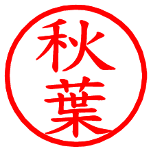 [朱肉の色]を選び、入力窓に“秋葉”と入力して[生成]ボタンを押すと、印影が更新され、リンクから電子印鑑(デジタル印影)がダウンロードできます。 電子印鑑「秋葉」の作り方文字表示が変なときや、文字バランスが悪いときは[字形切替]のチェックボックスでON/OFFを切り替え[生成]しなおしてください。 生成される画像は通常の印影「秋葉.png」と、にじみを表現した少し太めの印影「秋葉B.png」の背面透過PNG形式2種と、鮮明なPDF形式の印影「秋葉.pdf」の計3種類です。 朱肉の微妙な色の違いを7色で表現しました。デフォルト(左端)は、JISが定めた朱肉の色のマンセル値(7.5R 5/14)をRGB値(217,66,54)に変換したものになっています。 「電子透かし」にチェックを入れて[生成]ボタンを押すと、タイムスタンプを透かしとして埋め込んだセキュアな電子印鑑が作れます。詳細は別ページの「電子透かしとタイムスタンプ」でご覧ください。 秋葉さんの日付印が作れます。「日付スタンプメーカー」は、社内向けの書類に利用されることの多い日付印(データ印)が無料で作れるWebアプリケーションです。中段に日付が入り、上段と下段は、ともに8文字まで文字が入ります。 ![]() 古代文字で落款印が作れます。「落款スタンプメーカー」で作品を引き立たせる落款印が作れます。