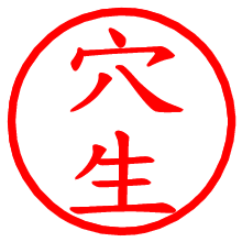 [朱肉の色]を選び、入力窓に“穴生”と入力して[生成]ボタンを押すと、印影が更新され、リンクから電子印鑑(デジタル印影)がダウンロードできます。 電子印鑑「穴生」の作り方文字表示が変なときや、文字バランスが悪いときは[字形切替]のチェックボックスでON/OFFを切り替え[生成]しなおしてください。 生成される画像は通常の印影「穴生.png」と、にじみを表現した少し太めの印影「穴生B.png」の背面透過PNG形式2種と、鮮明なPDF形式の印影「穴生.pdf」の計3種類です。 朱肉の微妙な色の違いを7色で表現しました。デフォルト(左端)は、JISが定めた朱肉の色のマンセル値(7.5R 5/14)をRGB値(217,66,54)に変換したものになっています。 「電子透かし」にチェックを入れて[生成]ボタンを押すと、タイムスタンプを電子透かしとして埋め込んだセキュアな電子印鑑が作れます。詳細は別ページの「タイムスタンプと電子透かし」でご覧ください。 穴生さんの日付印が作れます。「日付スタンプメーカー」は、社内向けの書類に利用されることの多い日付印(データ印)が無料で作れるWebアプリケーションです。中段に日付が入り、上段と下段は、ともに8文字まで文字が入ります。 ![]() 古代文字で落款印が作れます。「落款スタンプメーカー」で作品を引き立たせる落款印が作れます。