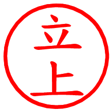 [朱肉の色]を選び、入力窓に“立上”と入力して[生成]ボタンを押すと、印影が更新され、リンクから電子印鑑(デジタル印影)がダウンロードできます。 電子印鑑「立上」の作り方文字表示が変なときや、文字バランスが悪いときは[字形切替]のチェックボックスでON/OFFを切り替え[生成]しなおしてください。 生成される画像は通常の印影「立上.png」と、にじみを表現した少し太めの印影「立上B.png」の背面透過PNG形式2種と、鮮明なPDF形式の印影「立上.pdf」の計3種類です。 朱肉の微妙な色の違いを7色で表現しました。デフォルト(左端)は、JISが定めた朱肉の色のマンセル値(7.5R 5/14)をRGB値(217,66,54)に変換したものになっています。 「電子透かし」にチェックを入れて[生成]ボタンを押すと、タイムスタンプを透かしとして埋め込んだセキュアな電子印鑑が作れます。詳細は別ページの「電子透かしとタイムスタンプ」でご覧ください。 立上さんの日付印が作れます。「日付スタンプメーカー」は、社内向けの書類に利用されることの多い日付印(データ印)が無料で作れるWebアプリケーションです。中段に日付が入り、上段と下段は、ともに8文字まで文字が入ります。 ![]() 古代文字で落款印が作れます。「落款スタンプメーカー」で作品を引き立たせる落款印が作れます。