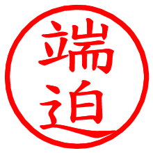 [朱肉の色]を選び、入力窓に“端迫”と入力して[生成]ボタンを押すと、印影が更新され、リンクから電子印鑑(デジタル印影)がダウンロードできます。 電子印鑑「端迫」の作り方文字表示が変なときや、文字バランスが悪いときは[字形切替]のチェックボックスでON/OFFを切り替え[生成]しなおしてください。 生成される画像は通常の印影「端迫.png」と、にじみを表現した少し太めの印影「端迫B.png」の背面透過PNG形式2種と、鮮明なPDF形式の印影「端迫.pdf」の計3種類です。 朱肉の微妙な色の違いを7色で表現しました。デフォルト(左端)は、JISが定めた朱肉の色のマンセル値(7.5R 5/14)をRGB値(217,66,54)に変換したものになっています。 「電子透かし」にチェックを入れて[生成]ボタンを押すと、タイムスタンプを電子透かしとして埋め込んだセキュアな電子印鑑が作れます。詳細は別ページの「タイムスタンプと電子透かし」でご覧ください。 端迫さんの日付印が作れます。「日付スタンプメーカー」は、社内向けの書類に利用されることの多い日付印(データ印)が無料で作れるWebアプリケーションです。中段に日付が入り、上段と下段は、ともに8文字まで文字が入ります。 ![]() 古代文字で落款印が作れます。「落款スタンプメーカー」で作品を引き立たせる落款印が作れます。