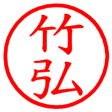 [朱肉の色]を選び、入力窓に“竹弘”と入力して[生成]ボタンを押すと、印影が更新され、リンクから電子印鑑(デジタル印影)がダウンロードできます。 電子印鑑「竹弘」の作り方文字表示が変なときや、文字バランスが悪いときは[字形切替]のチェックボックスでON/OFFを切り替え[生成]しなおしてください。 生成される画像は通常の印影「竹弘.png」と、にじみを表現した少し太めの印影「竹弘B.png」の背面透過PNG形式2種と、鮮明なPDF形式の印影「竹弘.pdf」の計3種類です。 朱肉の微妙な色の違いを7色で表現しました。デフォルト(左端)は、JISが定めた朱肉の色のマンセル値(7.5R 5/14)をRGB値(217,66,54)に変換したものになっています。 「電子透かし」にチェックを入れて[生成]ボタンを押すと、タイムスタンプを電子透かしとして埋め込んだセキュアな電子印鑑が作れます。詳細は別ページの「タイムスタンプと電子透かし」でご覧ください。 竹弘さんの日付印が作れます。「日付スタンプメーカー」は、社内向けの書類に利用されることの多い日付印(データ印)が無料で作れるWebアプリケーションです。中段に日付が入り、上段と下段は、ともに8文字まで文字が入ります。 ![]() 古代文字で落款印が作れます。「落款スタンプメーカー」で作品を引き立たせる落款印が作れます。