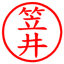 [朱肉の色]を選び、入力窓に“笠井”と入力して[生成]ボタンを押すと、印影が更新され、リンクから電子印鑑(デジタル印影)がダウンロードできます。 電子印鑑「笠井」の作り方文字表示が変なときや、文字バランスが悪いときは[字形切替]のチェックボックスでON/OFFを切り替え[生成]しなおしてください。 生成される画像は通常の印影「笠井.png」と、にじみを表現した少し太めの印影「笠井B.png」の背面透過PNG形式2種と、鮮明なPDF形式の印影「笠井.pdf」の計3種類です。 朱肉の微妙な色の違いを7色で表現しました。デフォルト(左端)は、JISが定めた朱肉の色のマンセル値(7.5R 5/14)をRGB値(217,66,54)に変換したものになっています。 「電子透かし」にチェックを入れて[生成]ボタンを押すと、タイムスタンプを透かしとして埋め込んだセキュアな電子印鑑が作れます。詳細は別ページの「電子透かしとタイムスタンプ」でご覧ください。 笠井さんの日付印が作れます。「日付スタンプメーカー」は、社内向けの書類に利用されることの多い日付印(データ印)が無料で作れるWebアプリケーションです。中段に日付が入り、上段と下段は、ともに8文字まで文字が入ります。 ![]() 古代文字で落款印が作れます。「落款スタンプメーカー」で作品を引き立たせる落款印が作れます。