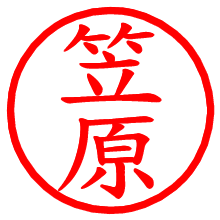 [朱肉の色]を選び、入力窓に“笠原”と入力して[生成]ボタンを押すと、印影が更新され、リンクから電子印鑑(デジタル印影)がダウンロードできます。 電子印鑑「笠原」の作り方文字表示が変なときや、文字バランスが悪いときは[字形切替]のチェックボックスでON/OFFを切り替え[生成]しなおしてください。 生成される画像は通常の印影「笠原.png」と、にじみを表現した少し太めの印影「笠原B.png」の背面透過PNG形式2種と、鮮明なPDF形式の印影「笠原.pdf」の計3種類です。 朱肉の微妙な色の違いを7色で表現しました。デフォルト(左端)は、JISが定めた朱肉の色のマンセル値(7.5R 5/14)をRGB値(217,66,54)に変換したものになっています。 「電子透かし」にチェックを入れて[生成]ボタンを押すと、タイムスタンプを透かしとして埋め込んだセキュアな電子印鑑が作れます。詳細は別ページの「電子透かしとタイムスタンプ」でご覧ください。 笠原さんの日付印が作れます。「日付スタンプメーカー」は、社内向けの書類に利用されることの多い日付印(データ印)が無料で作れるWebアプリケーションです。中段に日付が入り、上段と下段は、ともに8文字まで文字が入ります。 ![]() 古代文字で落款印が作れます。「落款スタンプメーカー」で作品を引き立たせる落款印が作れます。