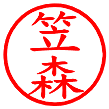 [朱肉の色]を選び、入力窓に“笠森”と入力して[生成]ボタンを押すと、印影が更新され、リンクから電子印鑑(デジタル印影)がダウンロードできます。 電子印鑑「笠森」の作り方文字表示が変なときや、文字バランスが悪いときは[字形切替]のチェックボックスでON/OFFを切り替え[生成]しなおしてください。 生成される画像は通常の印影「笠森.png」と、にじみを表現した少し太めの印影「笠森B.png」の背面透過PNG形式2種と、鮮明なPDF形式の印影「笠森.pdf」の計3種類です。 朱肉の微妙な色の違いを7色で表現しました。デフォルト(左端)は、JISが定めた朱肉の色のマンセル値(7.5R 5/14)をRGB値(217,66,54)に変換したものになっています。 「電子透かし」にチェックを入れて[生成]ボタンを押すと、タイムスタンプを透かしとして埋め込んだセキュアな電子印鑑が作れます。詳細は別ページの「電子透かしとタイムスタンプ」でご覧ください。 笠森さんの日付印が作れます。「日付スタンプメーカー」は、社内向けの書類に利用されることの多い日付印(データ印)が無料で作れるWebアプリケーションです。中段に日付が入り、上段と下段は、ともに8文字まで文字が入ります。 ![]() 古代文字で落款印が作れます。「落款スタンプメーカー」で作品を引き立たせる落款印が作れます。