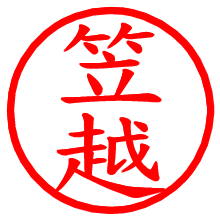 [朱肉の色]を選び、入力窓に“笠越”と入力して[生成]ボタンを押すと、印影が更新され、リンクから電子印鑑(デジタル印影)がダウンロードできます。 電子印鑑「笠越」の作り方文字表示が変なときや、文字バランスが悪いときは[字形切替]のチェックボックスでON/OFFを切り替え[生成]しなおしてください。 生成される画像は通常の印影「笠越.png」と、にじみを表現した少し太めの印影「笠越B.png」の背面透過PNG形式2種と、鮮明なPDF形式の印影「笠越.pdf」の計3種類です。 朱肉の微妙な色の違いを7色で表現しました。デフォルト(左端)は、JISが定めた朱肉の色のマンセル値(7.5R 5/14)をRGB値(217,66,54)に変換したものになっています。 「電子透かし」にチェックを入れて[生成]ボタンを押すと、タイムスタンプを電子透かしとして埋め込んだセキュアな電子印鑑が作れます。詳細は別ページの「タイムスタンプと電子透かし」でご覧ください。 笠越さんの日付印が作れます。「日付スタンプメーカー」は、社内向けの書類に利用されることの多い日付印(データ印)が無料で作れるWebアプリケーションです。中段に日付が入り、上段と下段は、ともに8文字まで文字が入ります。 ![]() 古代文字で落款印が作れます。「落款スタンプメーカー」で作品を引き立たせる落款印が作れます。
